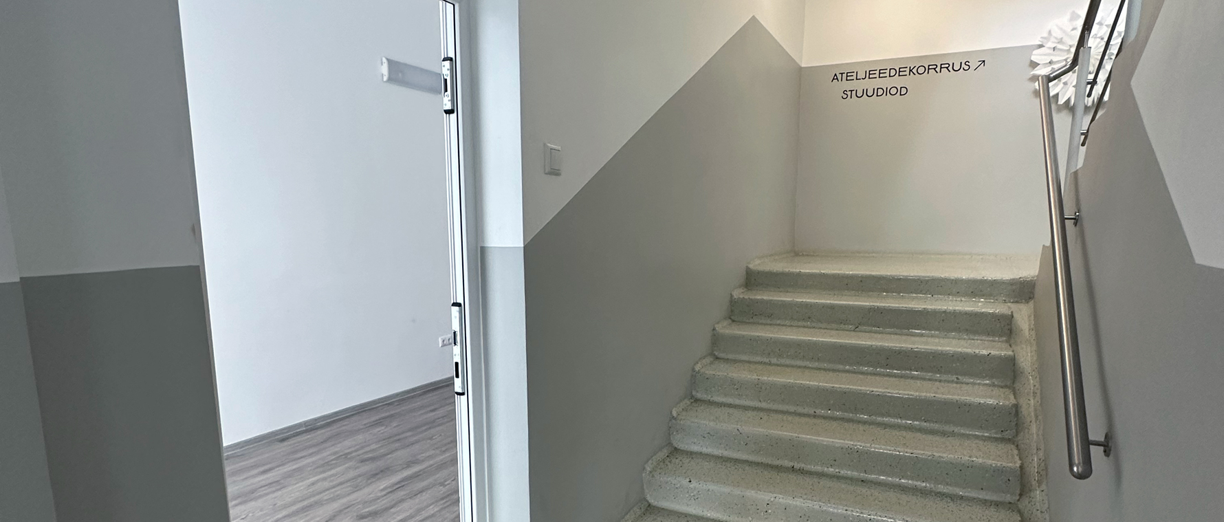 Peauksest sisenedes esimene ja ainus I korruse ruum. Stuudio koosneb kahest ruumist, wc-vannitoast, väiksest koridorist ja oma rõdust. Ideaalne koht nt pisikese poe pidamiseks – tööruum/ladu taga, esimeses ruumis esinduslik osa.